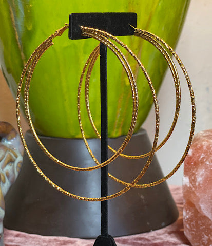 Our 1 of 1 perfect statement hoop earrings with three hoops made of gold plated and sterling silver.